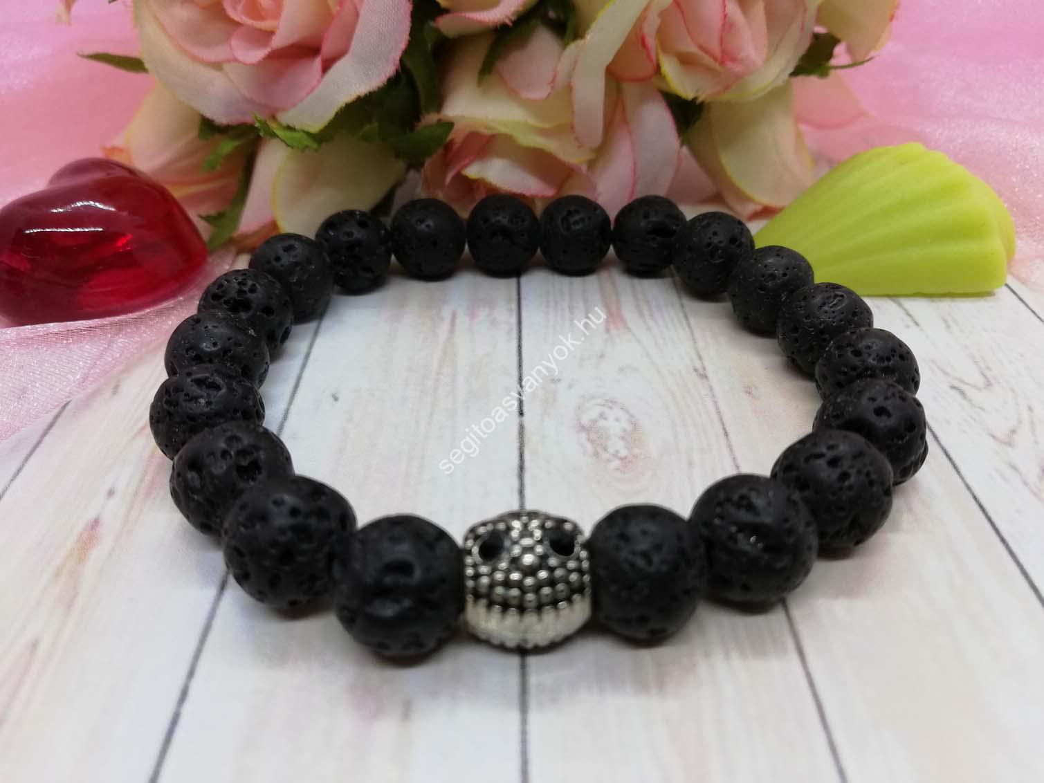 Idegrendszert segítő lávakő ásvány karkötő. Méregtelenítő hatása van, serkenti a sejtek vízutánpótlását, erősíti az inakat, segíti a kötőszövet regenerálását, illetve serkenti a vérkeringést. Biztosítja az egyensúlyt a szervezetben, nyugtatja az idegrendszert és hatékonyan serkenti az idegsejtek megújulását. Antibakteriális hatása van, ennek köszönhetően gyorsítja a seb gyógyulását.