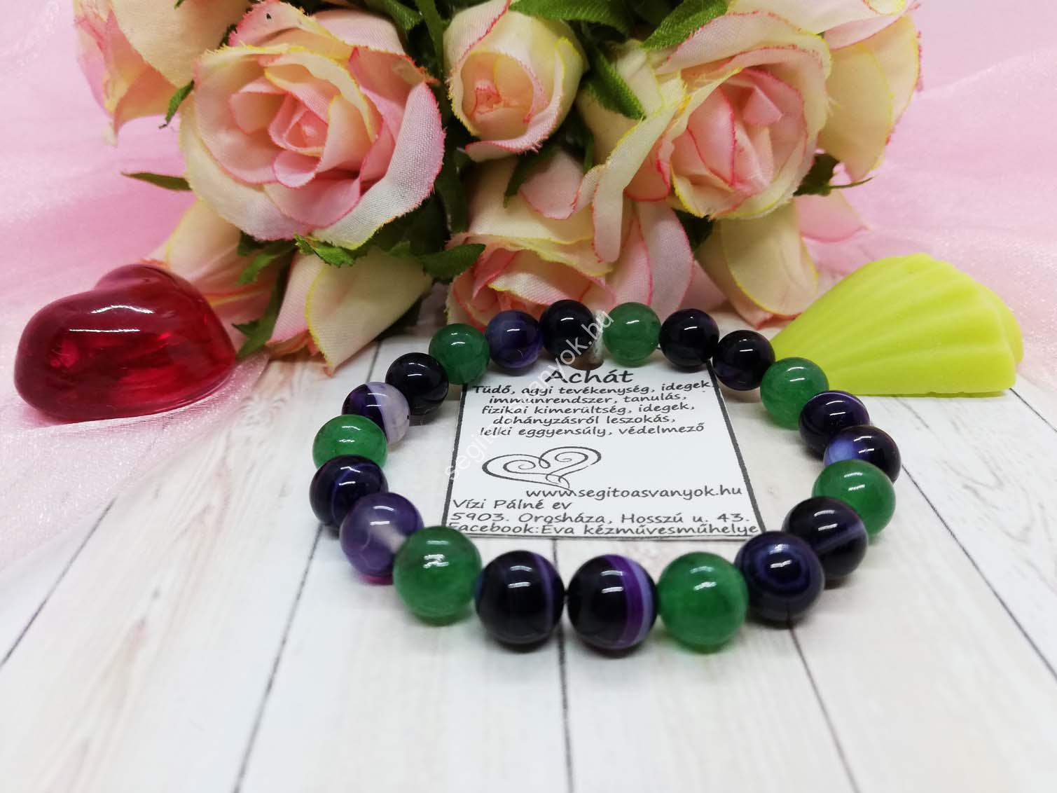 Stresszoldást segítő aventurin ásvány karkötő. Az aventurin segítséget nyújt allergia, bőrkiütések, ekcéma és pattanások, bélproblémák, püffedtség, hasmenés és székrekedés esetén. Kiválóan nyugtatja a szívet, magas vérnyomás kezelésére is alkalmas lehet. Leégéskor hűsítő hatása. Serkenti a felesleges zsír lebontását, ezért fogyókúrázóknak kifejezetten ajánlott! Használj nyakláncot és a jobb kézen karkötőt. Az aventurin ásvány vonzza a gazdagságot és a jó szerencsét, Megnyugtatja a szívet, feledteti gondjainkat, segíti a nyugodt alvást. Az egyik legkiválóbb nyugtató, lazító, harmóniát adó kő. Stressz esetén lenyugtatja a szívet és az idegeket. Segít a gondok, problémák eredményesebb kezelésében, azáltal, hogy kevesebb stressz éri a szervezetet.